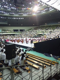 合唱そのものは、交響楽団の素晴らしい演奏・指揮者の鬼気迫る振り・3,000人の見事な声が混ざり合い、終わったときは、自分を含む周りの誰もが感動・感嘆の声を挙げてました。